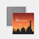 Ilustração Eid Greeting com uma cena do céu noturno: silhueta de uma mesquita num céu vermelho à noite.