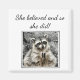 "Ela acreditava e assim acreditava!" citação motivacional ou inspiradora para a mulher, garota que gostaria de um lembrete de que o sucesso é o primeiro Excelente para aqueles que amam Raccoons ou animais como este parece que está batendo palmas para você.
