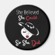 Íman de geladeira motivacional que mostra a citação "Ela Acreditava Que Podia".