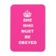 A paródia das mulheres engraçadas da vintage mantém o slogan calmo com ela que deve ser obedecida em uma cor de fundo brilhante, rosa, e coroa branca da princesa real ou tiara. Visite a LOJA PERSONALIZEDGIFTS para encontrar produtos compatíveis e mais mantenha a calma nos designs de tipografia inspirados