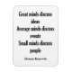 Esta excelente citação é de Eleanor Roosevelt, Primeira-dama dos Estados Unidos. "As mentes dos Excelentes discutem ideias. Média de mentes discute eventos. Mentes pequenas discutem pessoas. "Perfeito para o escritório, professor, professor, chefe, garota bonito