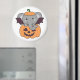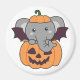 O elefante com a fantasia de morcego de abóbora de halloween. Animais engraçados em abóboras para o Halloween. Uma fantasia divertida de Halloween para bebês e crianças que amam elefantes.