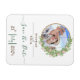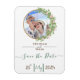 Capture seu amor em flor com nosso encantador quadro de flores de borda redonda casamento Ímãs Salve a data Personalize com sua foto querida e adicione um toque de elegância com letras verdes personalizáveis. Perfeito para celebrar seu dia especial!