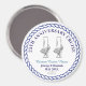 Small round cruise cabin door magnet with an elegant glass design to celebrate your wedding anniversary. Design featuring your names, the ship name, a date, or any text you need. It is ideal to hang in your stateroom and can be repurposed as a fridge magnet keepsake after the trip.