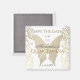 Simples, elegante, sofisticado borboleta de folha de ouro em combinação com fundo floral dourado caprichoso. Ímã exclusivo e adorável para Quinceanera Salve A Data.