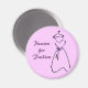 Esta imã de geladeira personalizável calçado um pincel pintado de um elegante vestido noturno em um cabide. O vestido tem um colar de arte e uma saia fluida com uma flor/arco na cintura. Pode ser um vestido de baile de formatura, coquetel ou vestido de festa, ou um vestido de noiva ou de damas de honra. Mostrado aqui com um slogan 'Paixão pela Moda', mas isso pode ser personalizado a palavras de sua escolha para fazer uma declaração sobre seu amor pela moda ou viver como uma princesa, ou para criar um presente único para um membro especial do partido noiva como a Madrinha de casamento, Chefe de Bridesmaid ou Mãe da Noiva.
