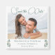 Um elegante roteiro de caligrafia verde com duas folhas de eucalipto aquoso em ambos os lados, na parte inferior, para decorar esta bela Imã salve a data de fotos de noivado para um casamento outono. Lindos ímãs modernos de casamento para uma ocasião de jardim à noite com sua fotografia de casal sob a tipografia cursiva.