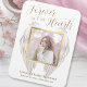 Um belo ímã de ouro e anjo branco de penas, lembrando o ímã fotográfico. Perfeito para enviar após a celebração da vida, do funeral ou do memorial. Personalize e crie seu próprio belo ímã adicionando sua própria foto e o texto preferido.