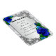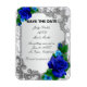 Bonito quadro de rosas azuis e padrão de folha prateada. Esta bela imã salve a data é uma maneira na moda, longa e duradoura de anunciar o seu grande dia. Personalize o ímã alterando o texto nos campos fornecidos. Você pode alterar o estilo, o tamanho e a cor da fonte.