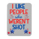 Este imã de 2024 Kamala Harris Eleitoral é uma engraçada rotação de uma das muitas coisas ridículas que Donald Trump disse ao longo dos anos. Numa entrevista, quando John McCain foi chamado de "herói de guerra", o Sr. Trump disse, "Ele era um herói porque foi capturado. Eu gosto de pessoas que não foram capturadas." Então... "Eu gosto de pessoas que não foram baleadas", era nascer. Este é um ímã engraçado e elegante, mas ainda classificado e apropriado para crianças e aqueles com baixa tolerância para linguagem ruim.