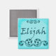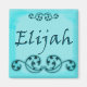 Personalizado com o nome Elijah em um fundo azul com trabalho de rolagem.