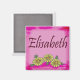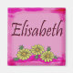 Personalizado com o nome Elisabeth em um fundo cor-de-rosa com margaridas.