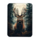 Uma cena poderosa e dramática de um alce parado orgulhosamente na floresta, suas majestosas galhadas acima da floresta densa. As sombras profundas e a atmosfera nebulosa ao redor da alce criam um senso de mistério e força, capturando a beleza bruta da natureza.