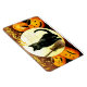 Um charmoso imã flexível do Dia das Bruxas com um gato preto e quatro Jack O'Lanterns, pintado pelo ilustrador americano/artista comercial Ellen Hattie Clapsaddle.