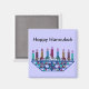 Acenda as oito noites de Chanukah com este íman colorido da menorah! Ilustração gráfica de um elefante, girafa e Estrela de David menorah design.