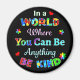 Citação inspiradora de "Em um MUNDO onde você pode ser qualquer coisa que seja gentil" para entender pessoas com distúrbio do espectro autista e encorajar a gentileza com eles.