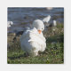 Bonito Emden Goose descansando ao lado do lago e do vaso.