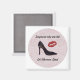 Melhorar o mundo: deixem as mulheres liderarem! Logótipo roxo com calçado de salto alto e beijo de morango!