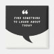 ENCONTRE ALGO SOBRE O QUE RIR HOJE DO MELHOR. Um presente de excelente para alguém que você ama ou melhor ainda para você. Não há nada melhor do que rir. Um ímã excelente para bater na geladeira, uma parede ou um armário para lembrá-lo todas as manhãs para procurar pelas coisas sobre as quais rir. A vida é curta. Ria. Chuckle. Divirta-se. Não leve nada muito a sério. Do Comediante Mike Binder. A LOJA MIKE BINDER