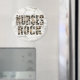Um muro de pedra fornece o texto "NURSES ROCK" com um fundo de parede esmaecido.