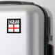 Uma fotografia da bandeira da Rua George num fundo preto com a palavra "ENGLAND" escrita acima em letras brancas a negrito.