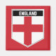 A bandeira nacional de Inglaterra é infundida em forma de escudo e colocada acima da bandeira é o nome do país.