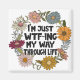 A vida engraçada diz: "Estou apenas a fazer o que eu faço na vida" com texto negro e uma coroa floral margarida.