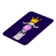 Um ímã flexível com uma lama branca a soprar uma grande bolha rosa. Vestindo uma coroa dourada e uma gravata arco preta. Fundo roxo escuro.