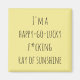 Imã de geladeira engraçada com a citação de "Sou um raio de sol feliz e sortudo" que certamente ganha toda a atenção que merece.