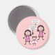 Ímanes engraçados de geladeira, cor-de-rosa, com figurinhas bonitinhas protestando por cor-de-rosa com placas de protesto e um fundo rosa. Este é um presente de excelente para um amigo ou para você mesmo que você pode ficar em um armário no trabalho, na geladeira da cozinha, e se divertir. Projetado para meninas ou mulheres que amam coisas de cinza rosa ou adoram cor rosa.