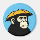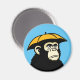 Imagem engraçada de um chimpanzé vestindo um chapéu guarda-chuva.