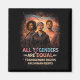 Three diverse figures stand before the transgender pride flag, declaring unity and equal rights for all genders.