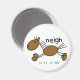 Animais de fazenda colam íman figurativo com um cavalo e texto que diz "próximo".