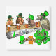 É uma verdadeira equipe de bebendos irlandeses! Um Irlandês Setter, um barman de Wolfhound irlandês, um spaniel de água irlandês, e um Irlandês Terrier partilhando um pouco da bolha no pub local! Camisas bonitas e divertidas para o dia dos aperitivos.