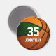 Esta equipe colorido o ímã temático basquete para rapazes ou raparigas apresenta a imagem realista de uma bola de basquete que tem dois painéis recoloridos - um verde e um laranja - facilmente personalizável com o nome do jogador e o número de uma camisa - por katz_d_zynes