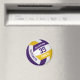 Este ímã temático de vôlei com cores personalizadas apresenta a imagem realista de um vôlei com painéis roxo, dourado e branco sobre os quais você pode personalizar o nome do jogador & número de camisa mais nome da escola ou do clube e nome de mascote em uma letra estilo varsity - por katz_d_zynes