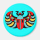 Imagem do meu trabalho artístico original. Este escaravelho arrojado, brilhante e colorido tem um padrão de abstrato com vermelho, azul, amarelo e preto. O fundo é um azul aqua vibrante. Veja minha loja Art by MAR para combinar produtos com este design.