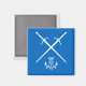 Duas espadas de barro cruzadas e um símbolo de carapaça nas cores da bandeira escocesa