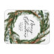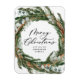 Escrito de coroa foliar mínimo moderno Cartão de Natal Feliz de Natal. O eucalipto pintado à mão, o ramo do pinheiro, a folhagem mínima e a coroa rattan moderna dão a este cartão de feriado uma sensação luxuosa. Em verdes clássicos, castanhos e cinzentos.