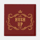 O ímã da cozinha engraçada para o povo do país apresenta texto "silêncio" dourado e quadro de rico sobre fundo vermelho escuro.
