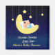 O design de um bebê numa lua entre as estrelas é uma estrela cintilante. Perfeito como chá de fraldas a favor do tema mencionado.