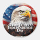 No Dia da Independência dos EUA, a águia careca - um símbolo de liberdade e força - sobe em frente à bandeira ondulada dos Estados Unidos. O seu olhar piercing e o vermelho ousado, branco e azul de fundo representam a coragem, a determinação e os valores históricos comemorados no dia 4 de julho. Esta imagem corporiza o orgulho de uma nação que defende a sua independência.