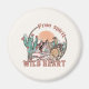 Esta design moderna e rústica mostra o estilo do país com as frases "Espírito Livre, Coração Selvagem" com uma vaqueira em um cavalo, montanhas e cacto. É um belo presente em Dias de os namorados, outras ocasiões ou apenas dias regulares. É perfeito para cowboys, cowboys ou amantes do país ocidental.