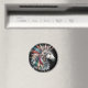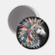 O ímã 'Espírito Unicórnio' mostra um unicórnio regal embelezado com penas nativas americanas, renderizadas em aquarela contra um fundo preto estrelado.