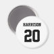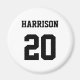 A varsity esportiva preto branco personalizado número de íman monograma. Estilo desportivo variado. Personalize-o com seu nome, idade, ano, número ou nome da equipe desportiva.
