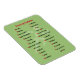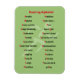 Um ímã divertido com um alfabeto para corredores. 26 letras do alfabeto com uma palavra ou frase em execução para cada uma. Em letras negras e vermelhas sobre fundo verde macio que também tem a silhueta de um corredor.