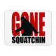 O texto de fonte grande e negrito diz GONE SQUATCHIN, (assim como Bobo!) com um sasquatch gráfico ou uma criatura de pé grande passando.