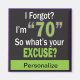 70 Aniversário. Esqueci? Eu sou Setenta! Então, qual é o seu ímã de desculpas? *** Preencha a(s) caixa(s) ou clique no botão PERSONALIZAR TI para personalizar com seu próprio texto. Se tiver alguma dúvida sobre este produto, contacte-me em siggyscott@comcast.net. Ficarei feliz em ajudar. Obrigado pelo apoio e pela minha loja!