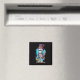 Um ímã com uma ilustração de um esqueleto humorístico. Vestindo um chapéu, segurando uma bebida. Ele tem um grande sorriso no rosto. Bonita e assustadora diversão para o Halloween.