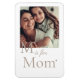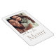 Íman branco de fundo com uma letra de serifa esticada em negrito colocada perto de uma fotografia centrada. Abaixo, um roteiro diz "é para", seguido da palavra serifa "Mãe" e um pequeno coração. Um layout suave que combina imagens com tipografia significativa.